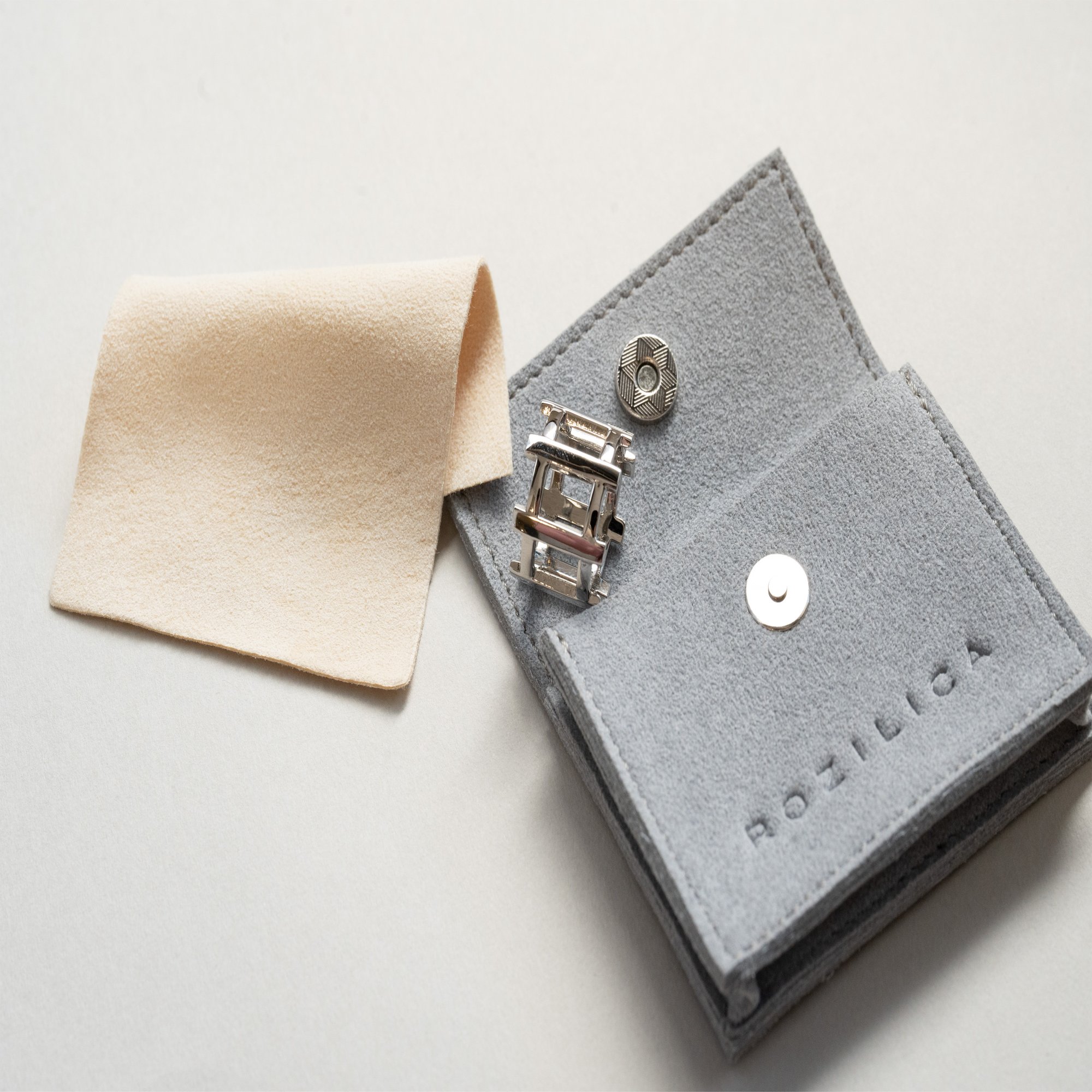 メガネって、購入すると「メガネケース」と「メガネ拭き」が必ずセットでついてきますよね?アクセサリーもそうあるべきなんじゃないかと思ったんです。
